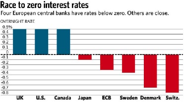 Today, around 20% of the world’s economies have negative interest rates. Canada and other countries in economic struggle are considering joining them. The U.S. has held interest rates near zero for 8 years to jump-start its economy, but that has not worked. So it is likely that negative interest rates could be tried in the U.S. as well. As proof, the Federal Reserve’s latest stress test guidelines in January 2016 included for the first time: negative yields on short-term U.S. Treasuries.